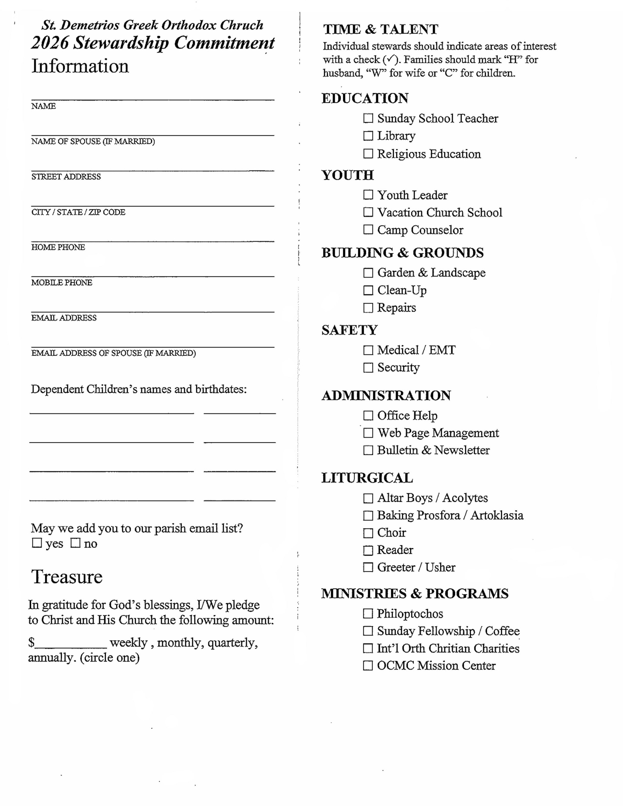 Religious freedom as we understand it in this country means we are free to worship as we choose… or not. We can do nothing at all if we so choose; believe nothing; go to no house of worship; support no religion. No one compels us to go to Church. Nor are we forced to support our Church. I, however, this Sunday, plan to uplift both hands to God in an expression of gratitude and acceptance of His great gifts. I urge you to do the same, in thanksgiving. Recognizing His blessings, I would also commend each and every one in our parish to be good and faithful stewards of His Holy Church, supporting it and working for the greater good of His community here in Williamsburg.
